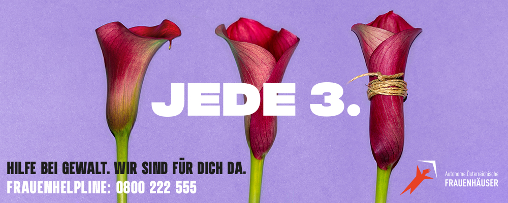 Jede dritte Frau in Österreich erlebt körperliche und/oder sexualisierte Gewalt. Auf dieser Statistik basiert die neue Online-Kampagne „JEDE 3.“ des Vereins Autonome Österreichische Frauenhäuser (AÖF), die zum Auftakt der 16 Tage gegen Gewalt an Frauen und Mädchen österreichweit startet. Die 16 Tage gegen Gewalt finden jährlich vom 25. November (Internationaler Gedenktag gegen Gewalt an Frauen) bis 10. Dezember (Tag der Menschenrechte) statt. Weltweit wird in diesem Zeitraum auf das Ausmaß und die Formen von Gewalt gegen Frauen und Mädchen aufmerksam gemacht. Kampagnenmaterialien Download: Instagram: @autonomefrauenhäuser