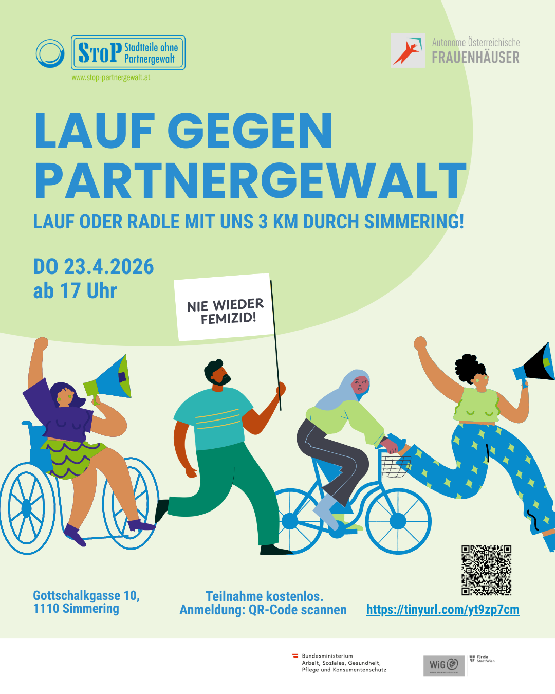 Am 23. April gehen wir gemeinsam auf die Straße. Laufe oder radle mit uns 3 km durch Simmering und setze ein Zeichen gegen Partnergewalt!Unser Lauf ist kein Wettbewerb, sondern ein Miteinander Das heißt: Wir achten aufeinander und warten auch zusammen...