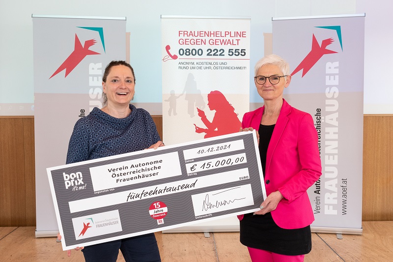 Anlässlich des 15-jährigen Firmenjubiläums unterstützt bonprix Österreich den AÖF - Verein Autonome Österreichische Frauenhäuser!